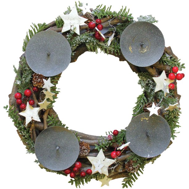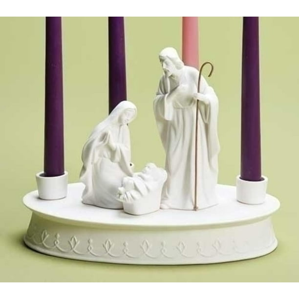 Buy advent candle holder with nativity in center at walmart.com. White candle is 14 3/4 high and decorated with holiday symbols, plus dates of the 24 days of advent. Mortime christmas advent wreath, 14 in purple ribbon christmas wreath advent ring candle holder, christmas centerpiece decoration with glitter berries for winter holidays home decor. Made by design only at. Free shipping on orders over $25 shipped by amazon.