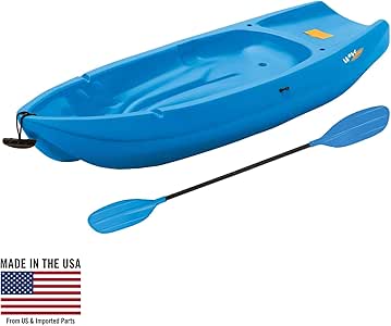 The youth wave kayak is a great first kayak for kids who want to learn how to paddle solo. Multiple footrests comfortably accommodate riders of different sizes. Your kid will receive a paddle to help them get into using the kayak. Weight capacity and comes in blue. Lifetime wave kayak is specifically designed for kids ages 5 and up, or up to 130 lbs.